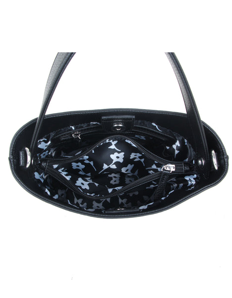 • Interior pockets: center zip divider, 1 zip, slip (2 front, 1 back)